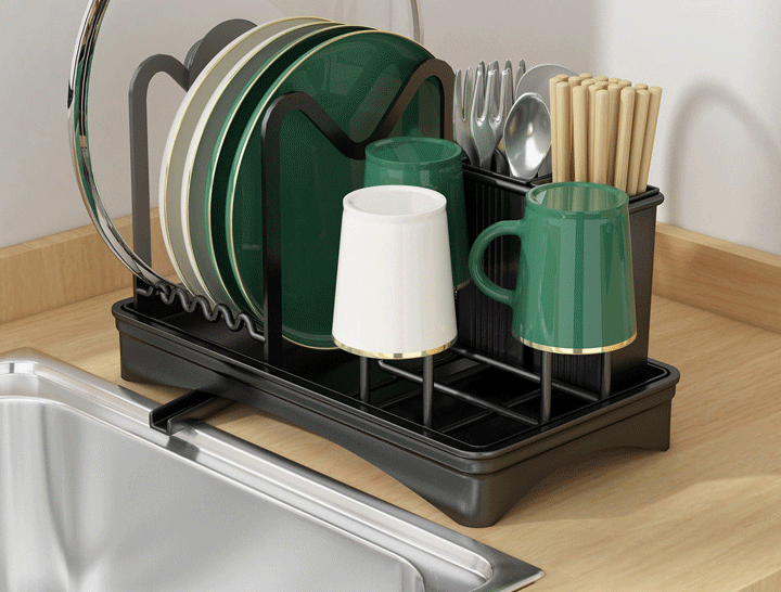 Czarny- Regały na naczynia w kuchni [taca odprowadzania wody]